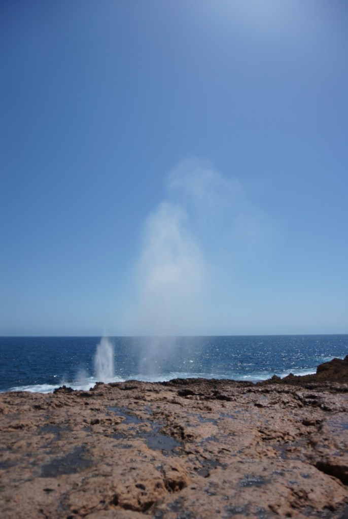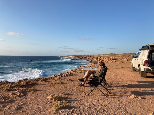 First stop was the local blowholes – three small blowholes and one monster. After checking in and setting up camp, we drove a few metres up the road to a deserted clifftop, where we had dinner while watching the sun set over the Indian Ocean. Not too shabby.