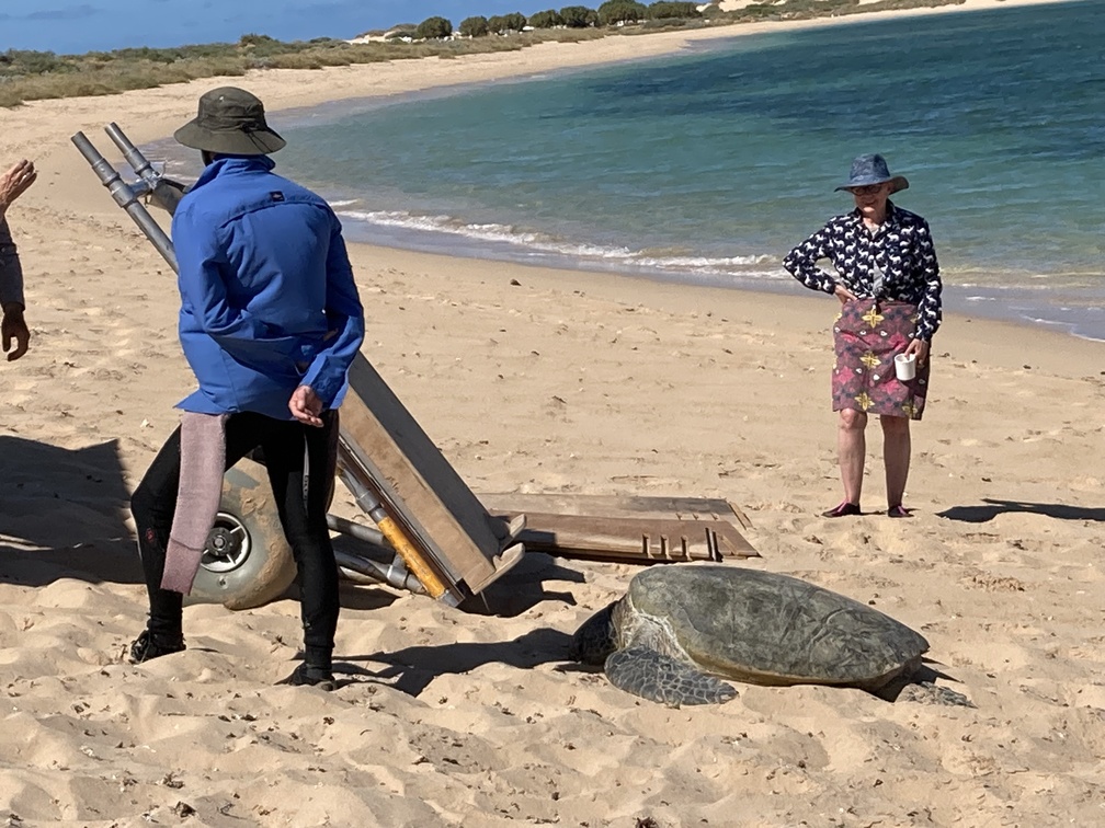 - the CSIRO turtle conservation scientists tagging and ultrasounding green turtles on the beach near our tent!