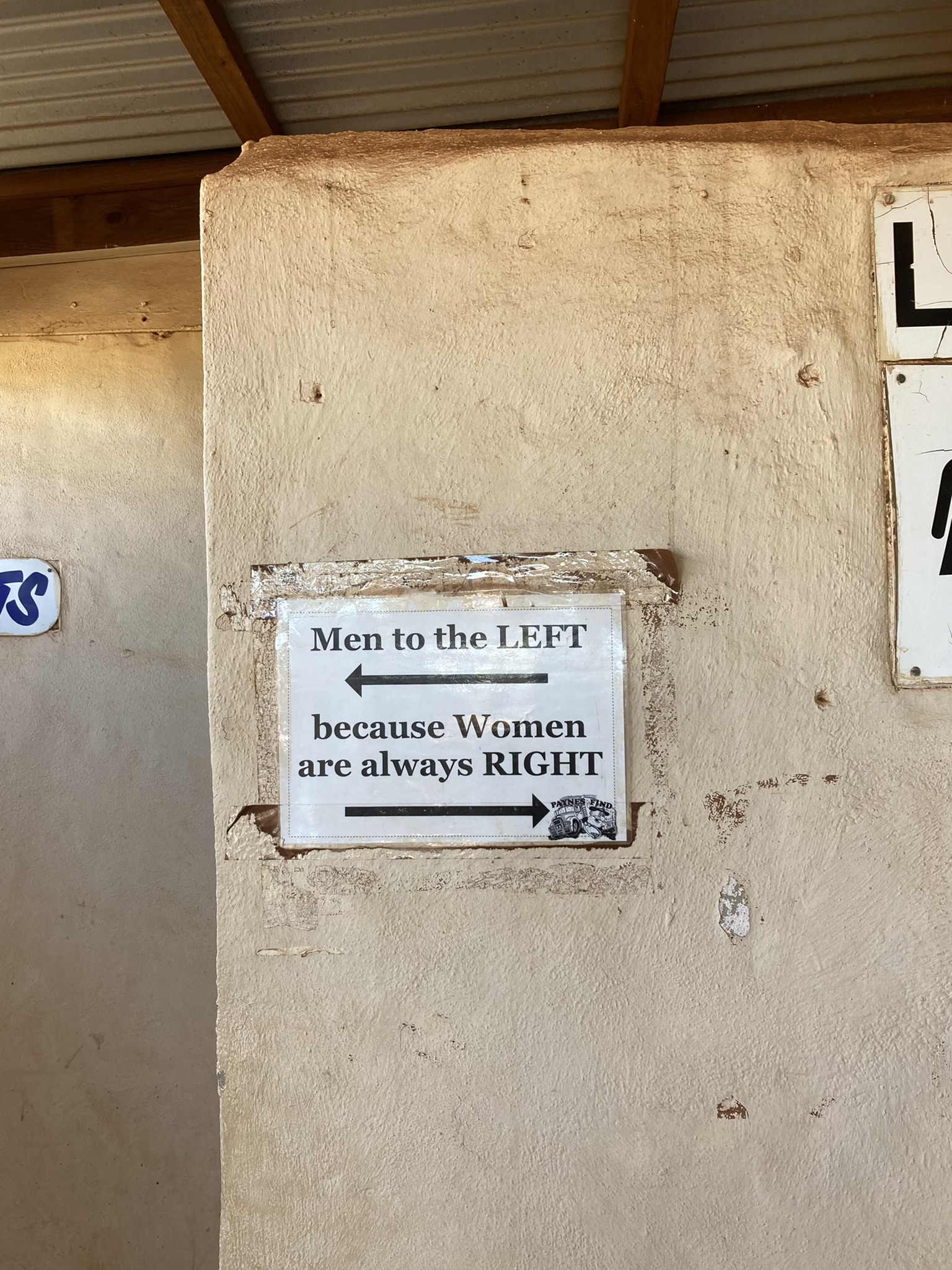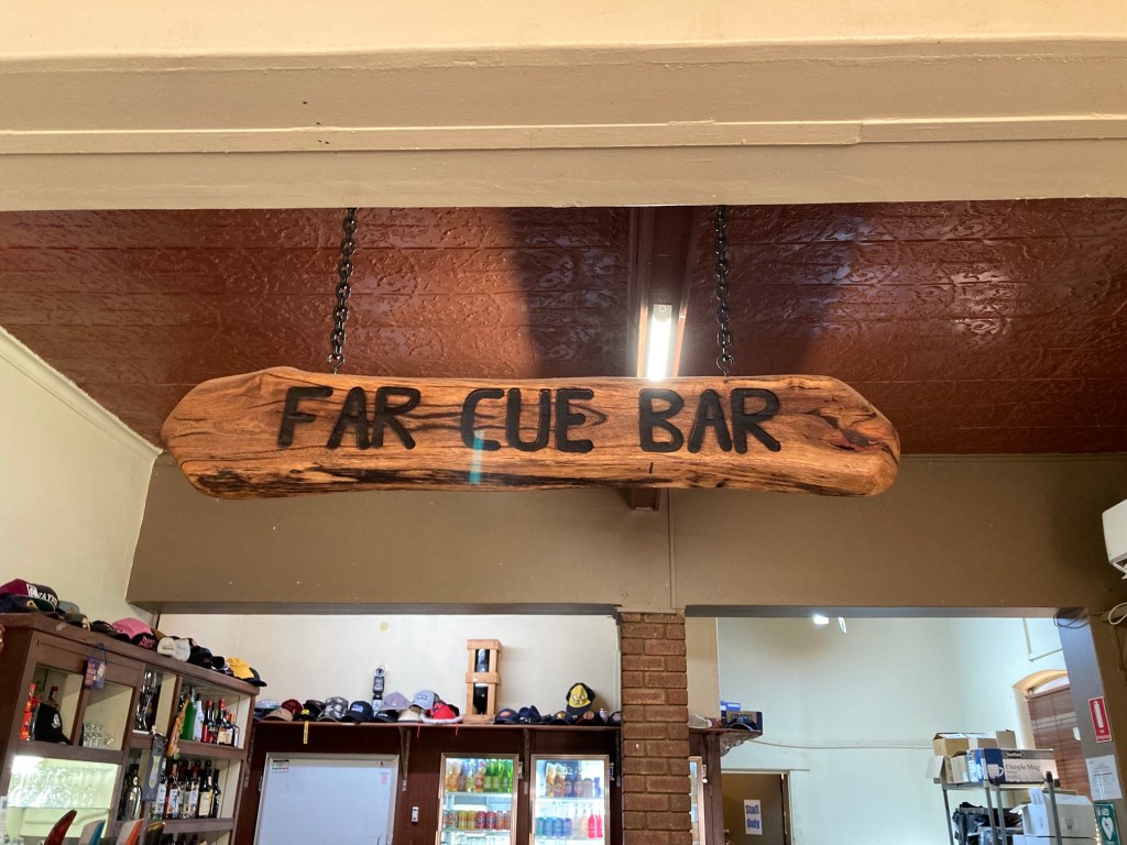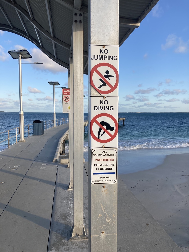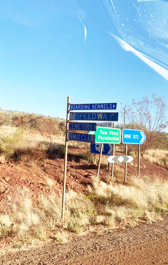 Above: On the outskirts of hardened mining town, Tom Price, this direction seems especially helpful.Useful info signs (above). The ‘King browns kill’ sign on the Exmouth brewery, Froth, is a riff on the famous ‘King waves kill’ sign next to the blowholes at Quobba.Above: More useful info. Seen on a roadhouse toilet block. Above: Something for everyone in this outback town.The civic-minded folk of Jurien Bay (above) love saying ‘No!’. Killjoys.The wild West goldrush town of Cue has a grand hotel with an even grander sign over the bar (above). The second bar also has a sign – ‘Far Cue 2 bar’.
