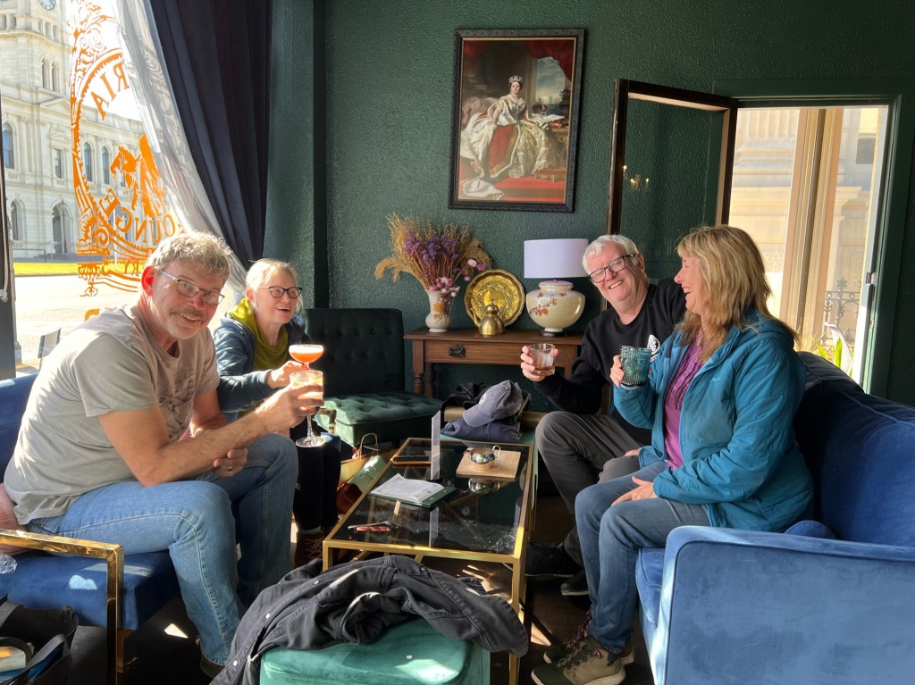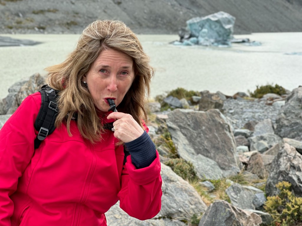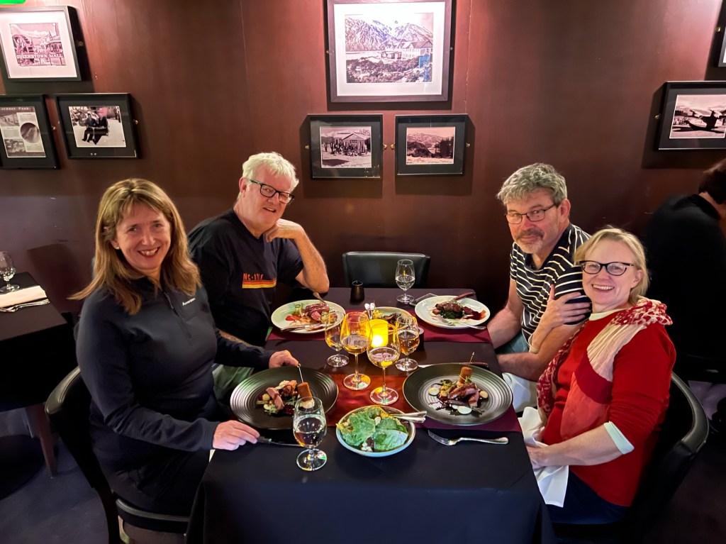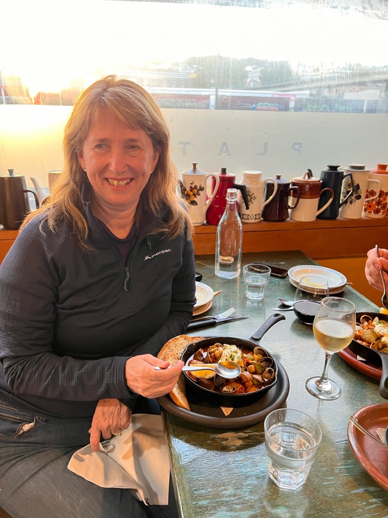 Soooo, we didn’t go hungry or thirsty in New Zealand. Here are some of the memorable feasts, eateries and drinks breaks. Special mention goes to Kerryn’s mobile drink station, a useful accessory for the modern trekking woman.