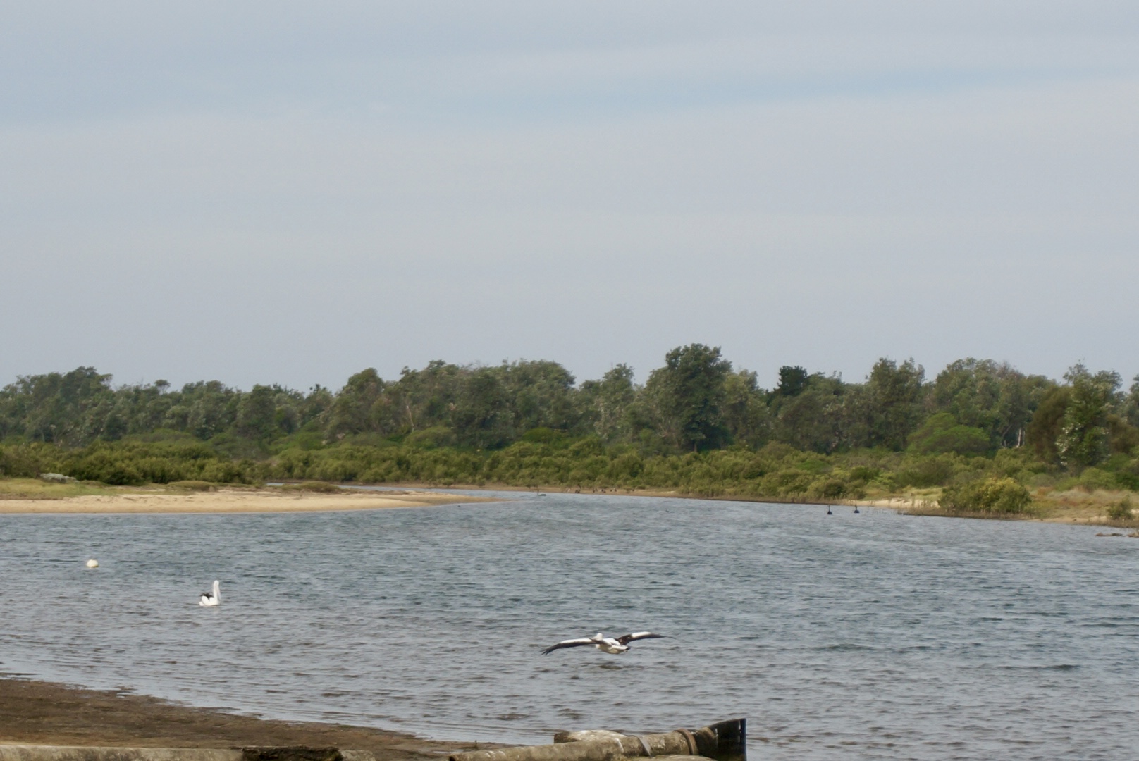 Sighted: Australian pelican, silver gull, black swan, Pacific gull or kelp gull (very large, white head and black body while sitting), little wattlebird.