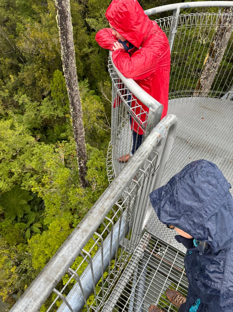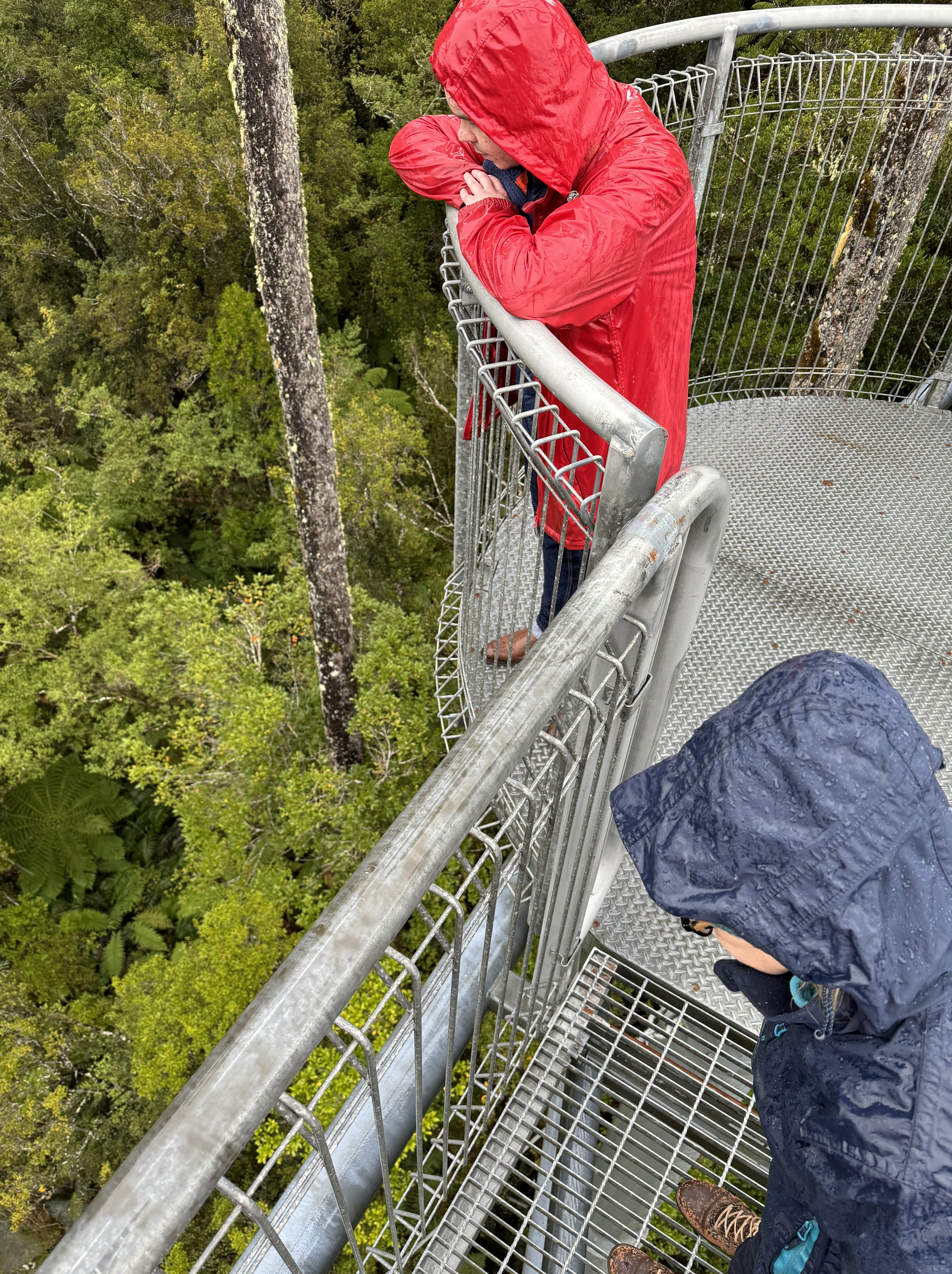 In Hokitika, we find the West Coast Tree Top Walk and Tower Zipline. The weather is starting to set in as we make our way there.