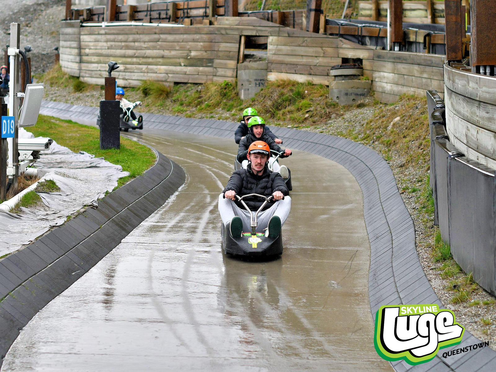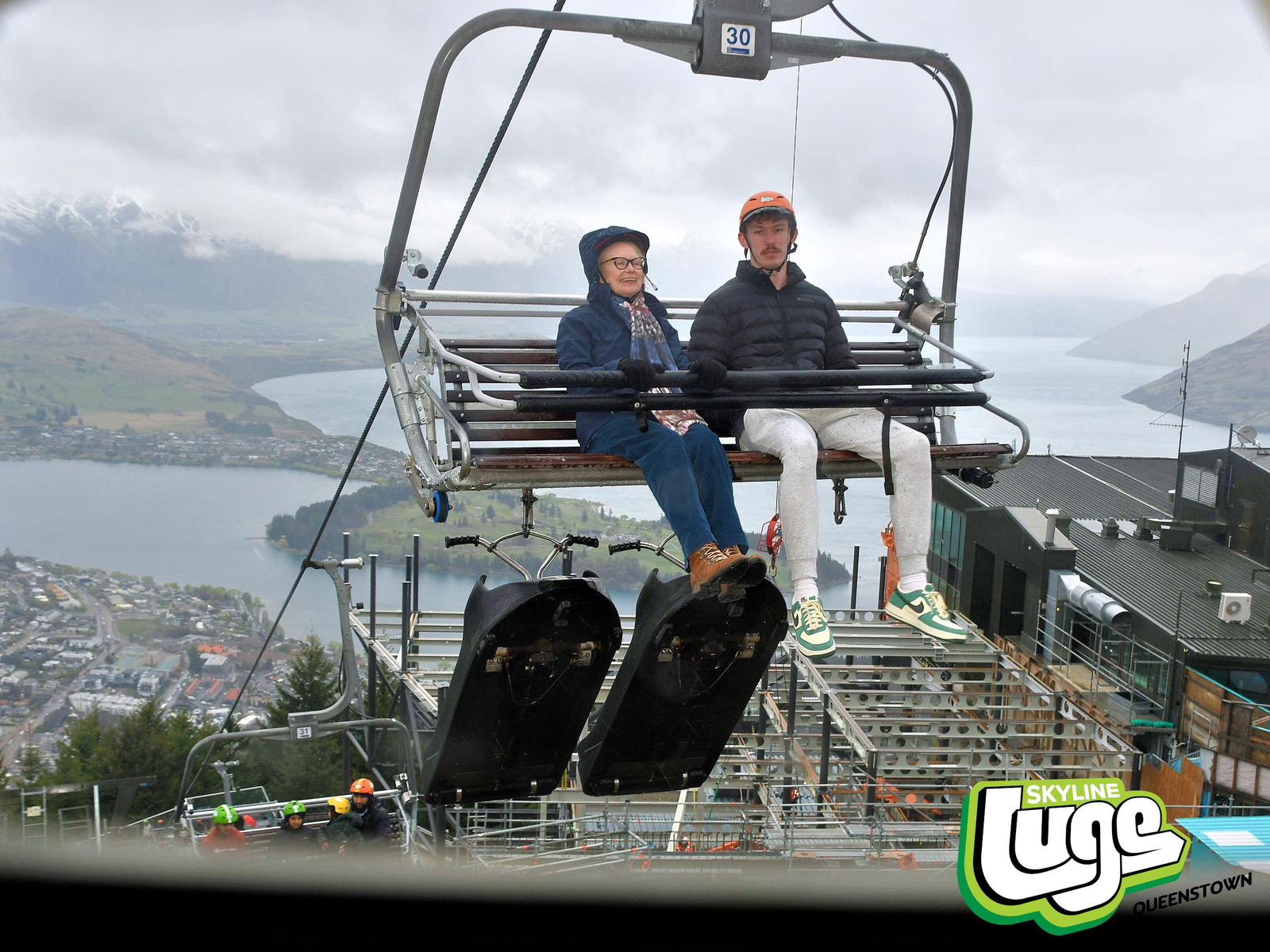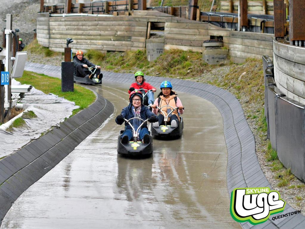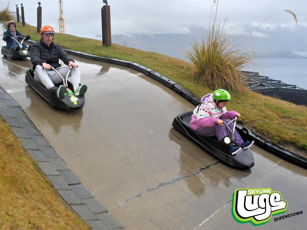 Since the bungy awesomeness, it’s been grey and rainy in Queenstown. Our Shotover jetboating has been cancelled. But nothing, not even torrential rain, will stop Gabe and I from trying the Queenstown Luge.