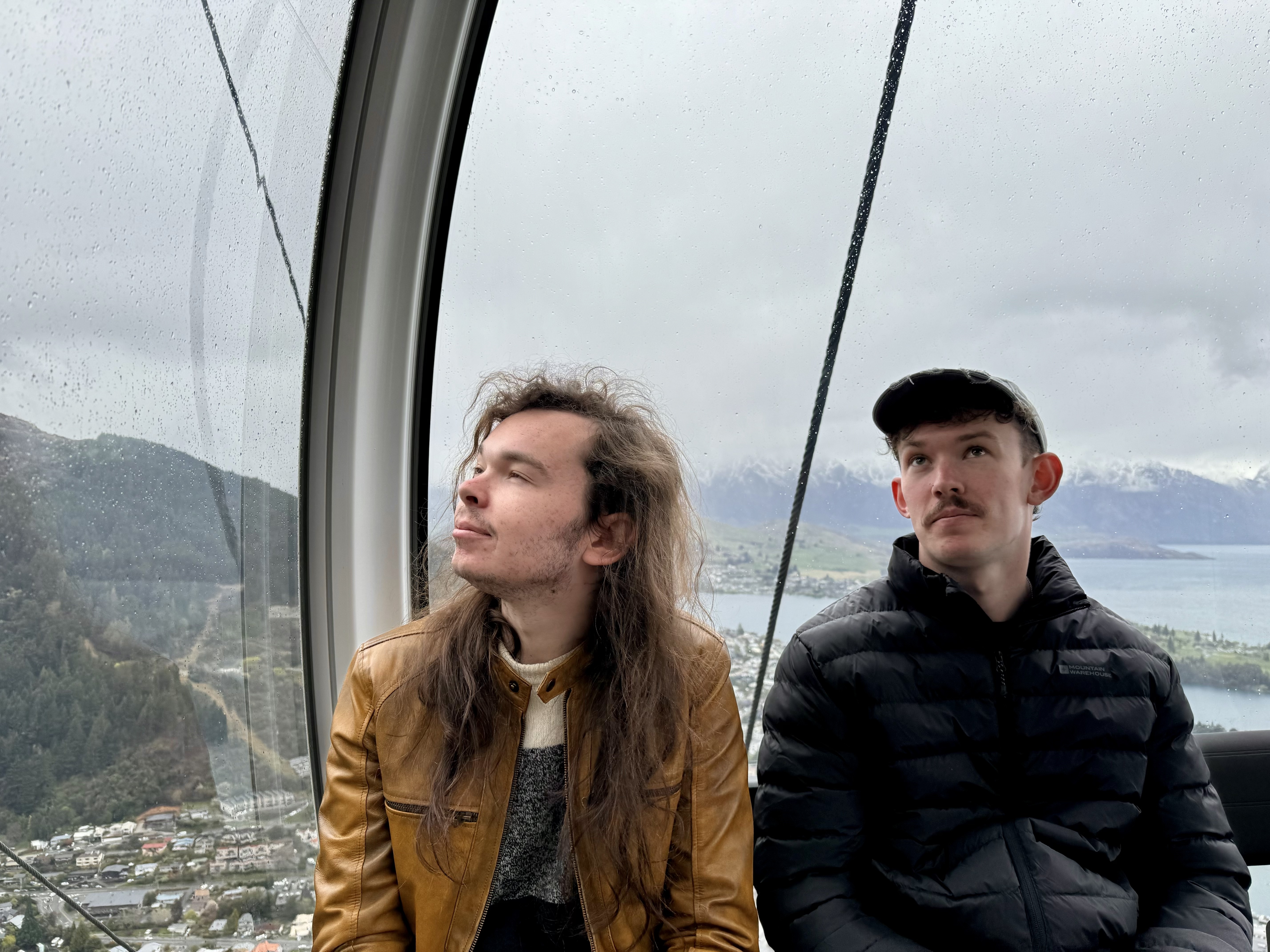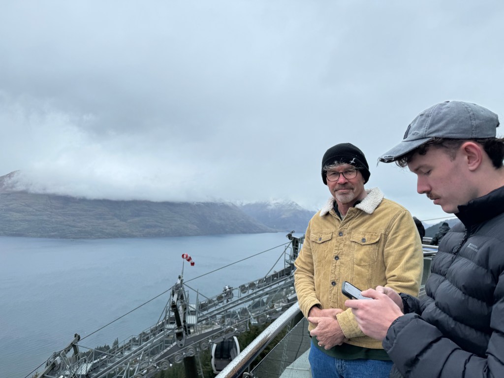 The four of us take the gondola up to the Queenstown mountain top for a spectacular (rainy) view of Lake Wakatipu.